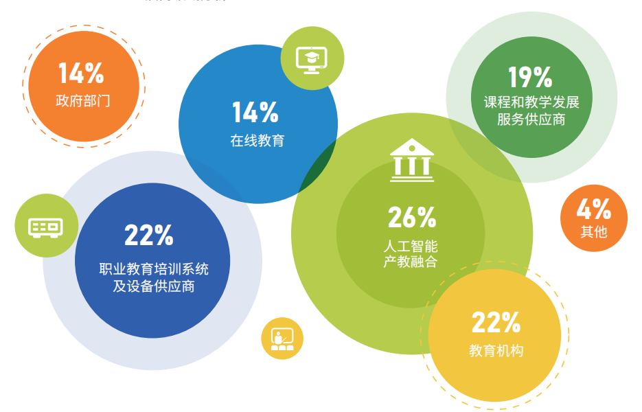 的展商来自人工智能产教融合,其次在教育培训系统及设备供应商占比为22%
