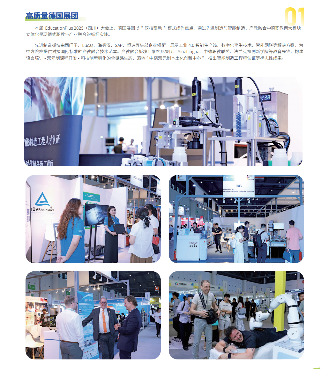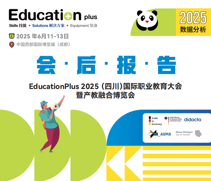 EducationPlus 2025(四川)国际职业教育大会暨产教融合博览会于6月11-13日在中国西部国际博览城成功举办。本次大会由四川省教育厅、德国联邦经济事务和气候行动部、德国联邦职业技术教育与培训研究所、德国巴登符腾堡州教育、青年和体育部、德意志联邦共和国驻华大使馆、德国联邦中小企业联合会及德国联邦企业职业培训师协会共同指导,德国教育产业协会和德国斯图加特展览集团联合主办,四川省教育对外交流中心、南京斯图加特联合展览有限公司及山东省产教融合综合服务平台共同承办。大会吸引了超4,000名专业观众和来自24个国家及地区的400多家企业与职业院校参展参会,大会面积达12000平方米。